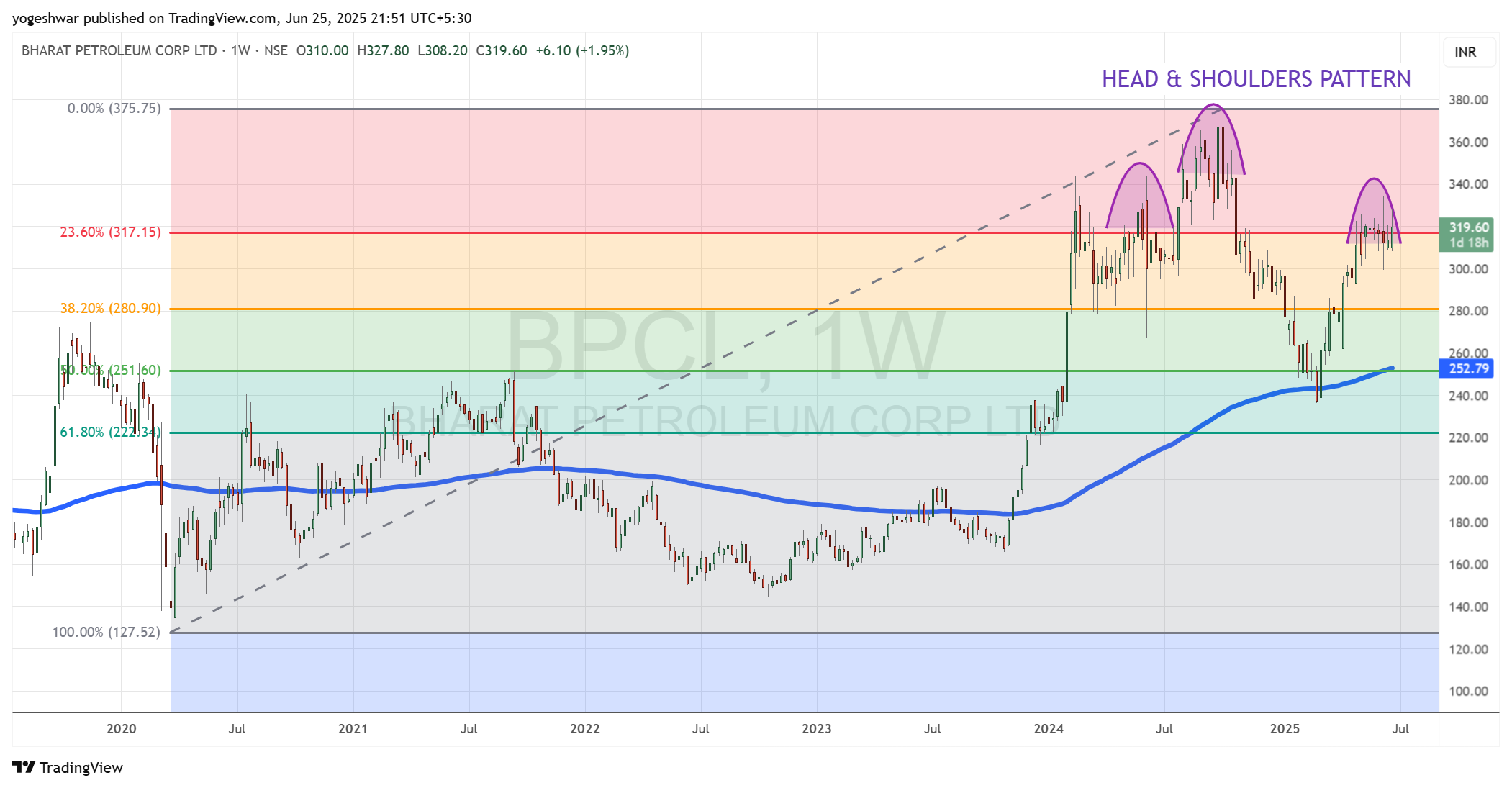 BPCL has made a strong upward move in the recent rally, though key resistance levels and chart patterns suggest caution.