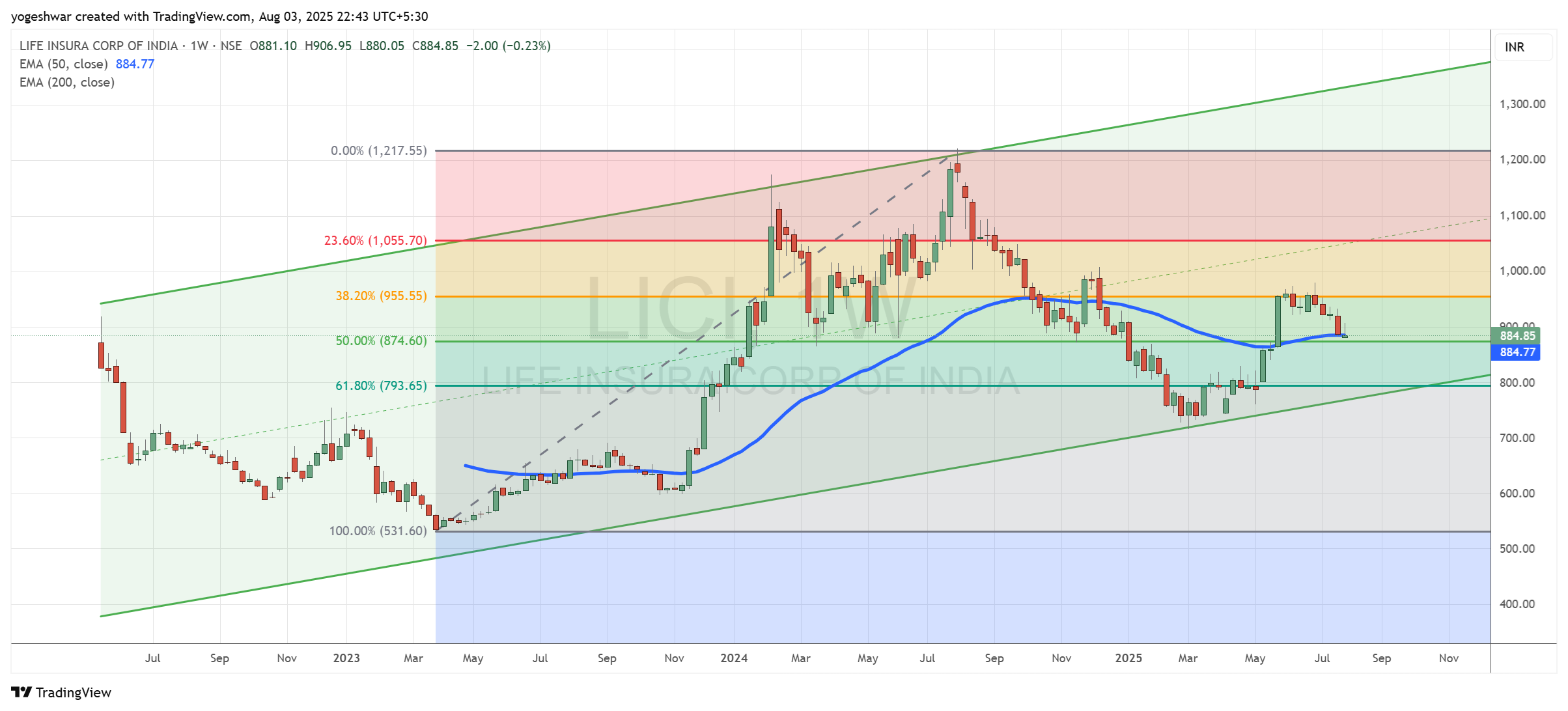 Nearly three years after its IPO at 870, LICI trades only slightly higher, reflecting the limited post-listing returns even for a market giant.